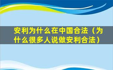 安利为什么在中国合法(为什么很多人说做安利合法)