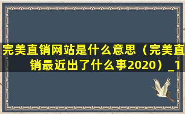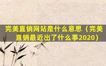 完美直销网站是什么意思(完美直销最近出了什么事2020)