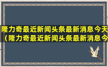 隆力奇最近新闻头条最新消息今天(隆力奇最近新闻头条最新消息今天视频)