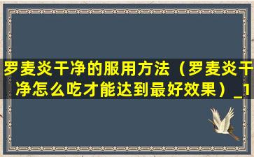 罗麦炎干净的服用方法(罗麦炎干净怎么吃才能达到最好效果)