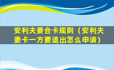 安利夫妻合卡规则(安利夫妻卡一方要退出怎么申请)