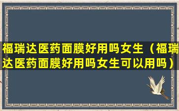 福瑞达医药面膜好用吗女生(福瑞达医药面膜好用吗女生可以用吗)