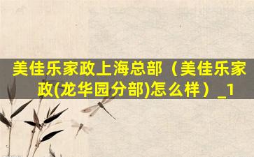 美佳乐家政上海总部(美佳乐家政(龙华园分部)怎么样)