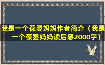 我是一个葆婴妈妈作者简介(我是一个葆婴妈妈读后感2000字)