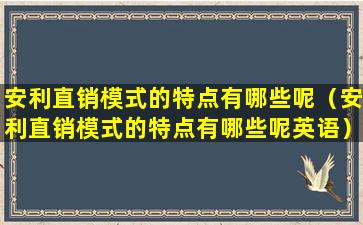 安利直销模式的特点有哪些呢(安利直销模式的特点有哪些呢英语)