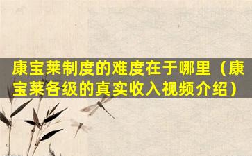 康宝莱制度的难度在于哪里(康宝莱各级的真实收入视频介绍)