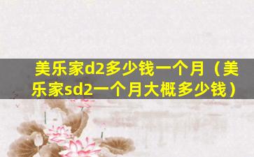 美乐家d2多少钱一个月(美乐家sd2一个月大概多少钱)