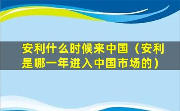 安利什么时候来中国(安利是哪一年进入中国市场的)