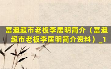 富迪超市老板李居明简介(富迪超市老板李居明简介资料)