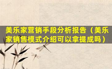 美乐家营销手段分析报告(美乐家销售模式介绍可以拿提成吗)