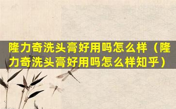 隆力奇洗头膏好用吗怎么样(隆力奇洗头膏好用吗怎么样知乎)