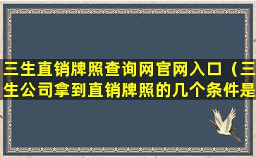 三生直销牌照查询网官网入口(三生公司拿到直销牌照的几个条件是什么)