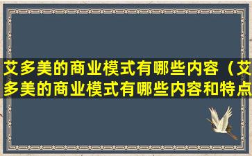 艾多美的商业模式有哪些内容(艾多美的商业模式有哪些内容和特点)