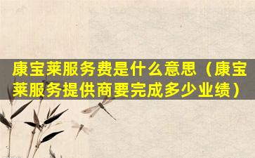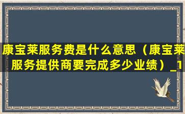 康宝莱服务费是什么意思(康宝莱服务提供商要完成多少业绩)