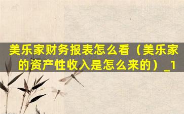 美乐家财务报表怎么看(美乐家的资产性收入是怎么来的)