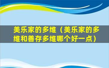 美乐家的多维(美乐家的多维和善存多维哪个好一点)