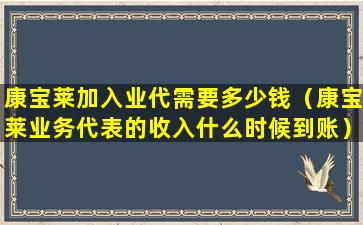 康宝莱加入业代需要多少钱(康宝莱业务代表的收入什么时候到账)