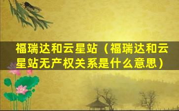 福瑞达和云星站(福瑞达和云星站无产权关系是什么意思)