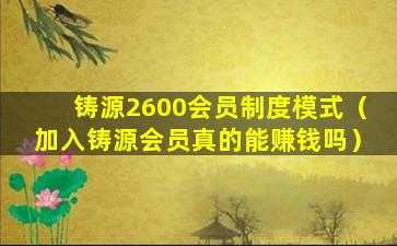 铸源2600会员制度模式(加入铸源会员真的能赚钱吗)
