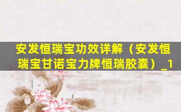 安发恒瑞宝功效详解