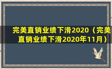 完美直销业绩下滑2020(完美直销业绩下滑2020年11月)