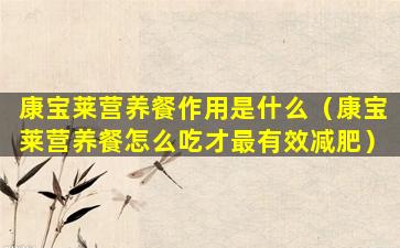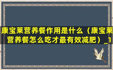 康宝莱营养餐作用是什么(康宝莱营养餐怎么吃才最有效减肥)