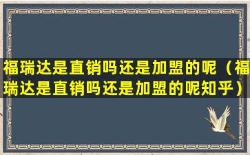 福瑞达是直销吗还是加盟的呢(福瑞达是直销吗还是加盟的呢知乎)