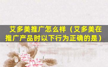 艾多美推广怎么样(艾多美在推广产品时以下行为正确的是)