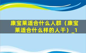 康宝莱适合什么人群(康宝莱适合什么样的人干)