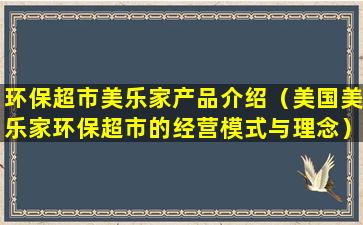 环保超市美乐家产品介绍(美国美乐家环保超市的经营模式与理念)