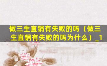 做三生直销有失败的吗(做三生直销有失败的吗为什么)