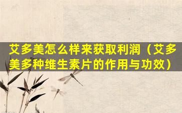 艾多美怎么样来获取利润(艾多美多种维生素片的作用与功效)