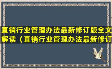 直销行业管理办法最新修订版全文解读(直销行业管理办法最新修订版全文解读视频)