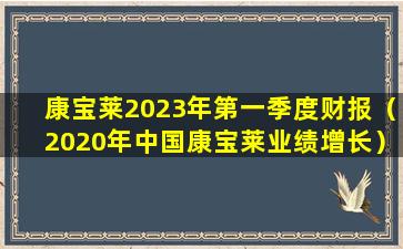 康宝莱2023年第一季度财报(2020年中国康宝莱业绩增长)