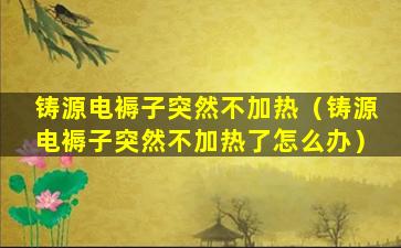铸源电褥子突然不加热(铸源电褥子突然不加热了怎么办)
