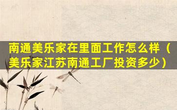 南通美乐家在里面工作怎么样(美乐家江苏南通工厂投资多少)