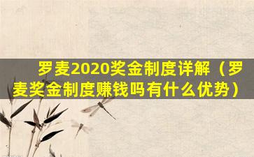 罗麦2020奖金制度详解(罗麦奖金制度赚钱吗有什么优势)
