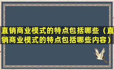 直销商业模式的特点包括哪些(直销商业模式的特点包括哪些内容)