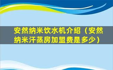 安然纳米饮水机介绍(安然纳米汗蒸房加盟费是多少)