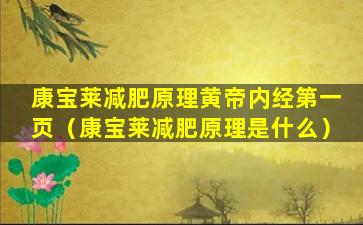 康宝莱减肥原理黄帝内经第一页(康宝莱减肥原理是什么)
