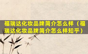 福瑞达化妆品牌简介怎么样(福瑞达化妆品牌简介怎么样知乎)