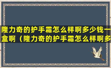 1、隆力奇的护手霜怎么样啊多少钱一盒啊