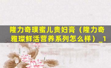 隆力奇璞蜜儿贵妇膏(隆力奇雅璨鲜活营养系列怎么样)