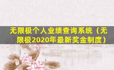 无限极个人业绩查询系统(无限极2020年最新奖金制度)