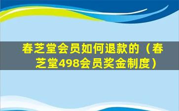 春芝堂会员如何退款的(春芝堂498会员奖金制度)
