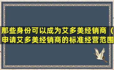 那些身份可以成为艾多美经销商(申请艾多美经销商的标准经营范围)