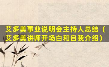 艾多美事业说明会主持人总结(艾多美讲师开场白和自我介绍)