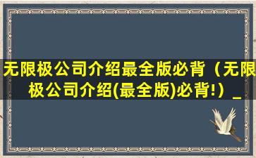无限极公司介绍最全版必背(无限极公司介绍(最全版)必背!)