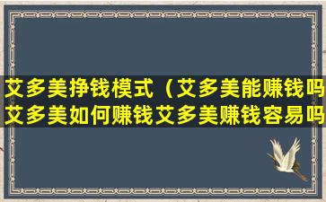 艾多美挣钱模式(艾多美能赚钱吗艾多美如何赚钱艾多美赚钱容易吗)