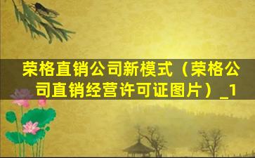荣格直销公司新模式(荣格公司直销经营许可证图片)